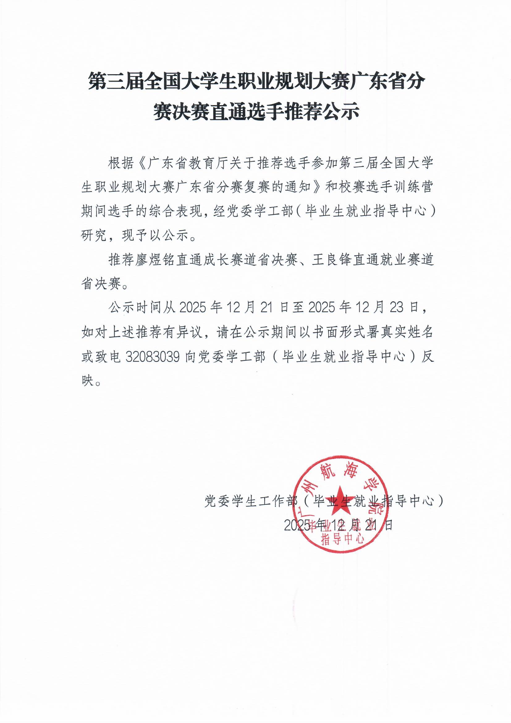 第三届全国大学生职业规划大赛广东省分赛决赛直通选手推荐公示